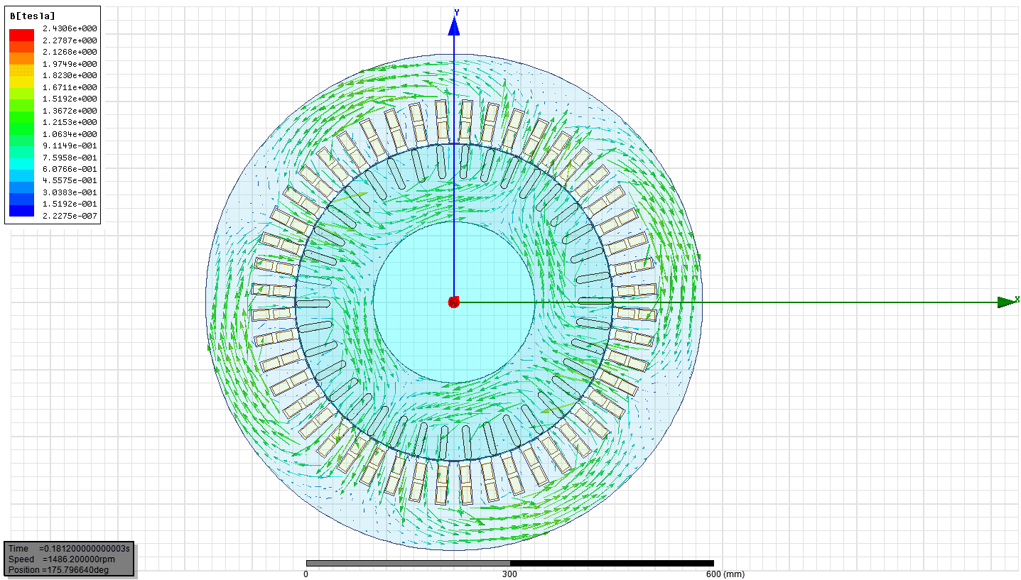 | 利用“场路”结合方法的电磁分析图 | 电磁计算输出的曲线 |